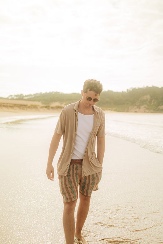 Sanderson Bowling Shirt - Washed Cream Coffee